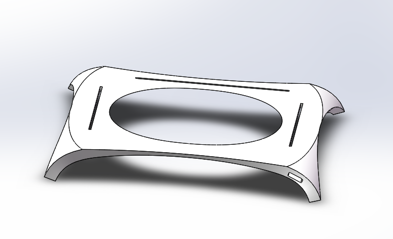 曲面手寫板我們最想得到的效果是其空間立體感,即外觀上的視覺沖擊.初步設(shè)想是一個(gè)弧面(圖示)整體外觀有了便設(shè)計(jì)細(xì)節(jié),首先想到的是筆的放置問題,考慮到該手寫板的弧形外觀會(huì)造成底部會(huì)有比較大的空間,正好可以放置手寫筆同時(shí)不會(huì)影響到外觀.