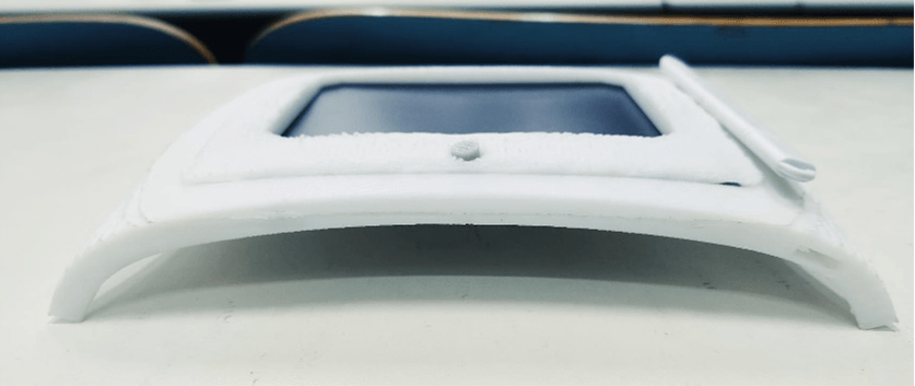 首先對(duì)于我們組第一塊手寫板來講,由于曲面的存在,金屬加工的難度較大,所以我們組成員決定用3D打印來制造第一塊手寫板的基體、按鈕以及蓋板.