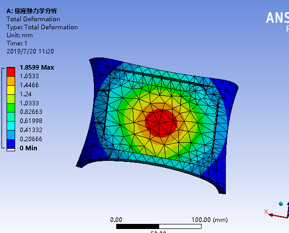 首先我們先對(duì)手寫板的基體進(jìn)行受力分析,看看在不加其它物體的情況下,自身是否能承受一定的力而保持變形量很小,試驗(yàn)一下在底座的哪個(gè)地方是變形比較嚴(yán)重的點(diǎn)、應(yīng)力比較大的點(diǎn).
