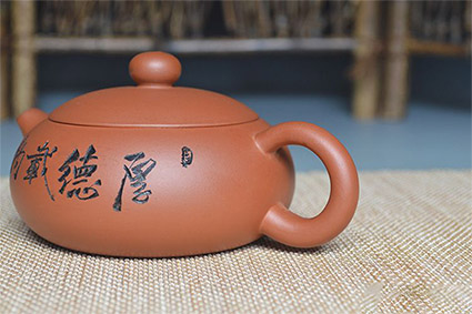紫砂壺刻字分手刻和機器刻.手刻比較費力費時,且容易崩砂;機刻只需要借助電腦設計出圖案然后交給機器操作即可.