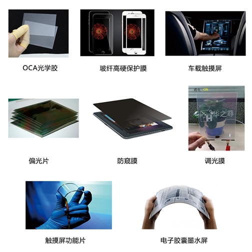 激光切割由于加工精度高、速度快、非接觸切割、柔性加工、精準控制等特點,所以在FPD產業中得到廣泛應用,主要應用于Film sensor切割、柔性顯示面板、電子紙切割、調光膜切割、手寫板切割、偏光片、光學膠(OCA)、電容觸摸屏功能片、玻纖高硬保護膜、功能膜片(防膜防膜、增光膜、放射片光片擴散片、光片)等領域。